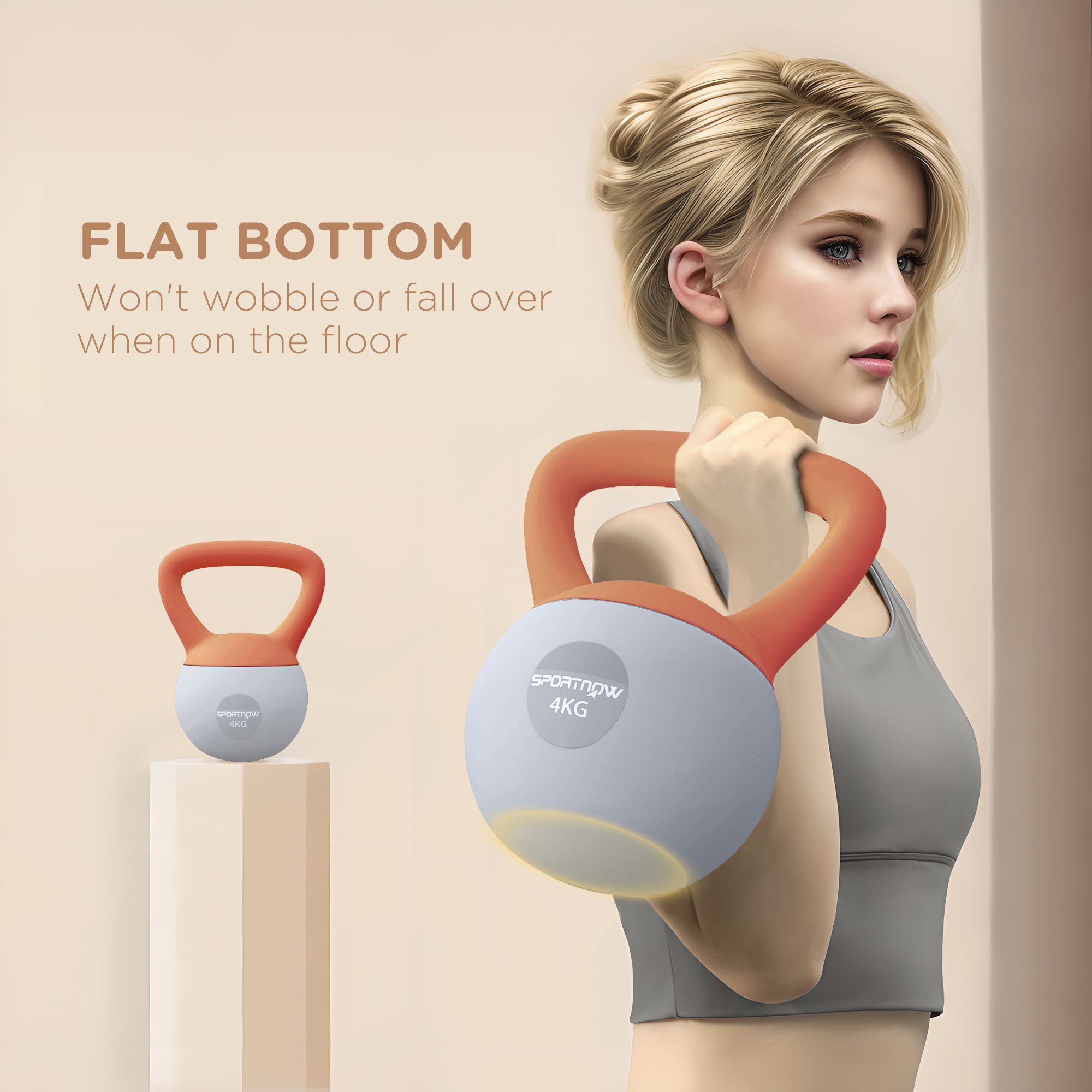 SPORTEDGE Soft Kettlebell, 4kg Kettle Bell with Non-Slip Handle for Home Gym Weight Lifting and Strength Training, Orange and Grey