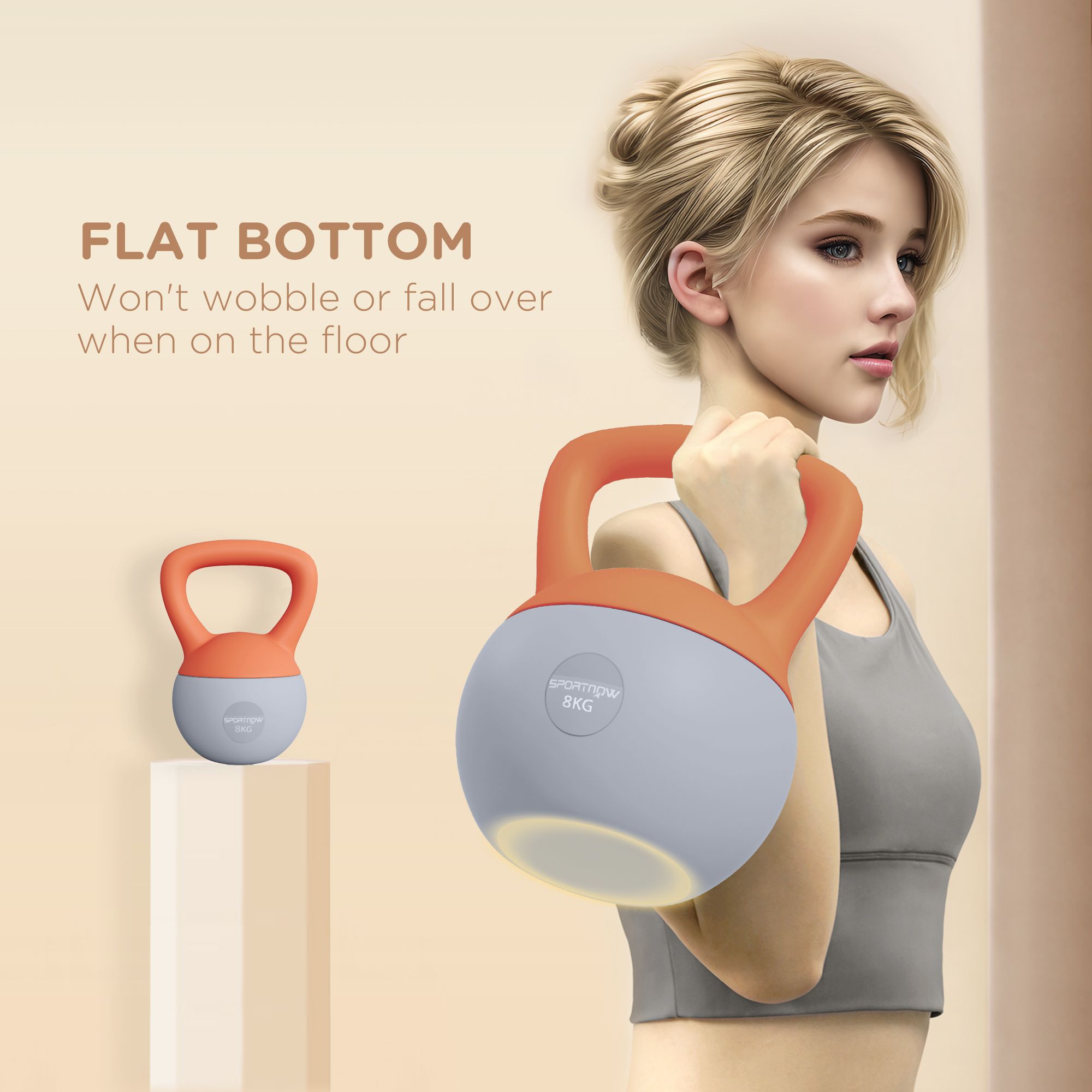 SPORTEDGE Soft Kettlebell, 8kg Kettle Bell with Non-Slip Handle for Home Gym Weight Lifting and Strength Training, Orange and Grey