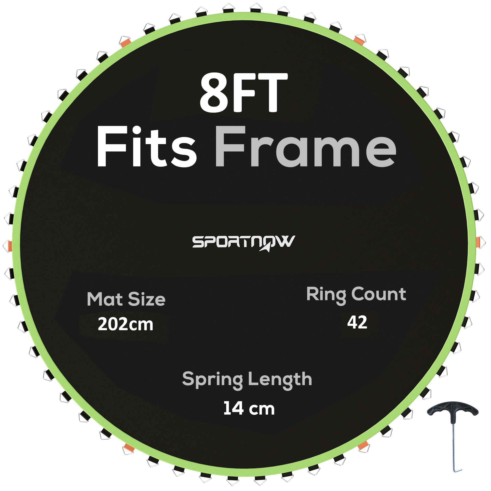 SPORTEDGE Trampoline Replacement Mat with Spring Pull Tool, 42 V-Hooks, for 8ft Trampoline using 14cm Springs, Green