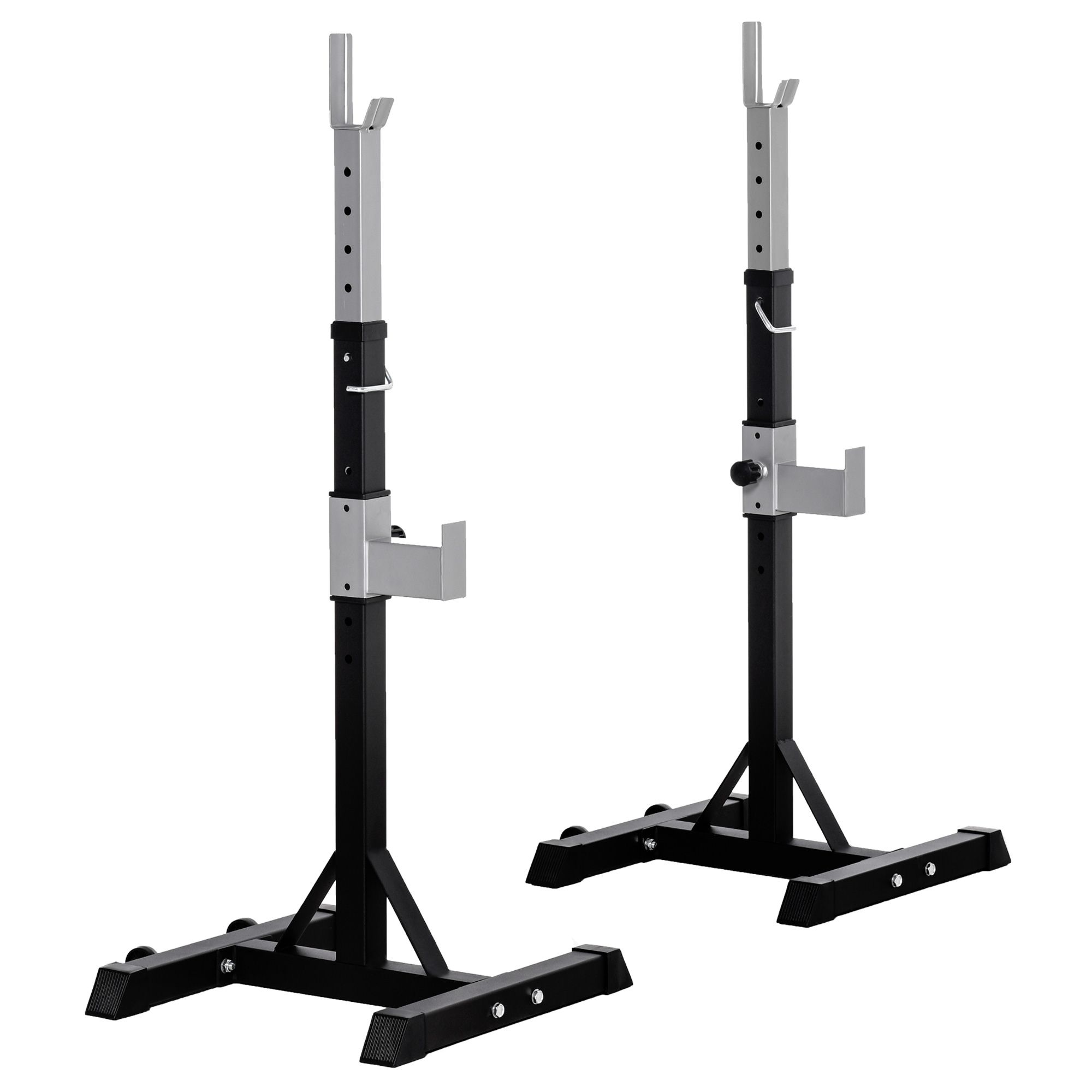 • ADJUSTABLE HEIGHT: Be adjusted to suit your height, to achieve better workout results. 2 sets of barbells can be placed on this pair of squat racks and each barbell height can be adjusted