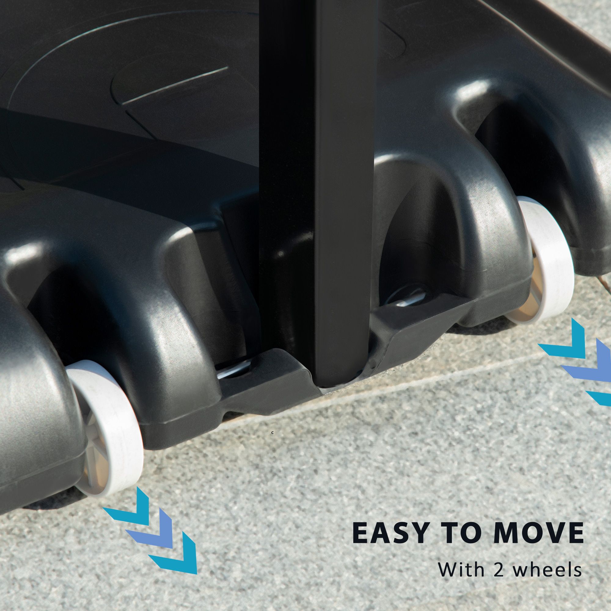 - Base can be filled with sand or water, keeping it firmly to the ground — Built-in wheels to move around easily
