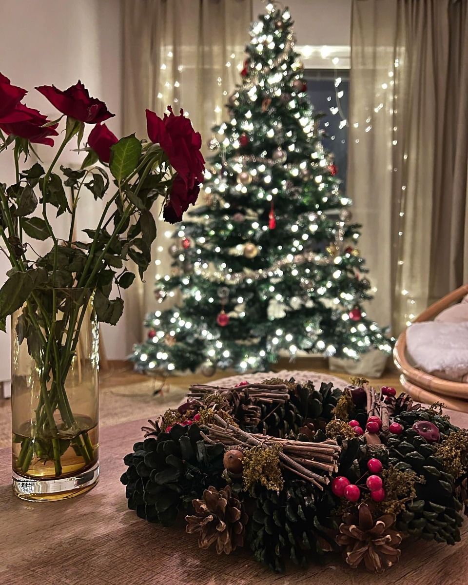 Bring some Christmas magic to your interior with this traditional looking wreath. Made of pine cones combined with natural looking additives will serve you for years to come, always enriching the seasonal style of your home. Lay this ornamental piece on a table and certainly this exceptional decoration will draw attention of your guests.