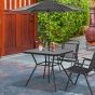 Square Outdoor Table, Patio Bistro Coffee Table with Faux-marbled Top and 42mm Umbrella Hole for Garden