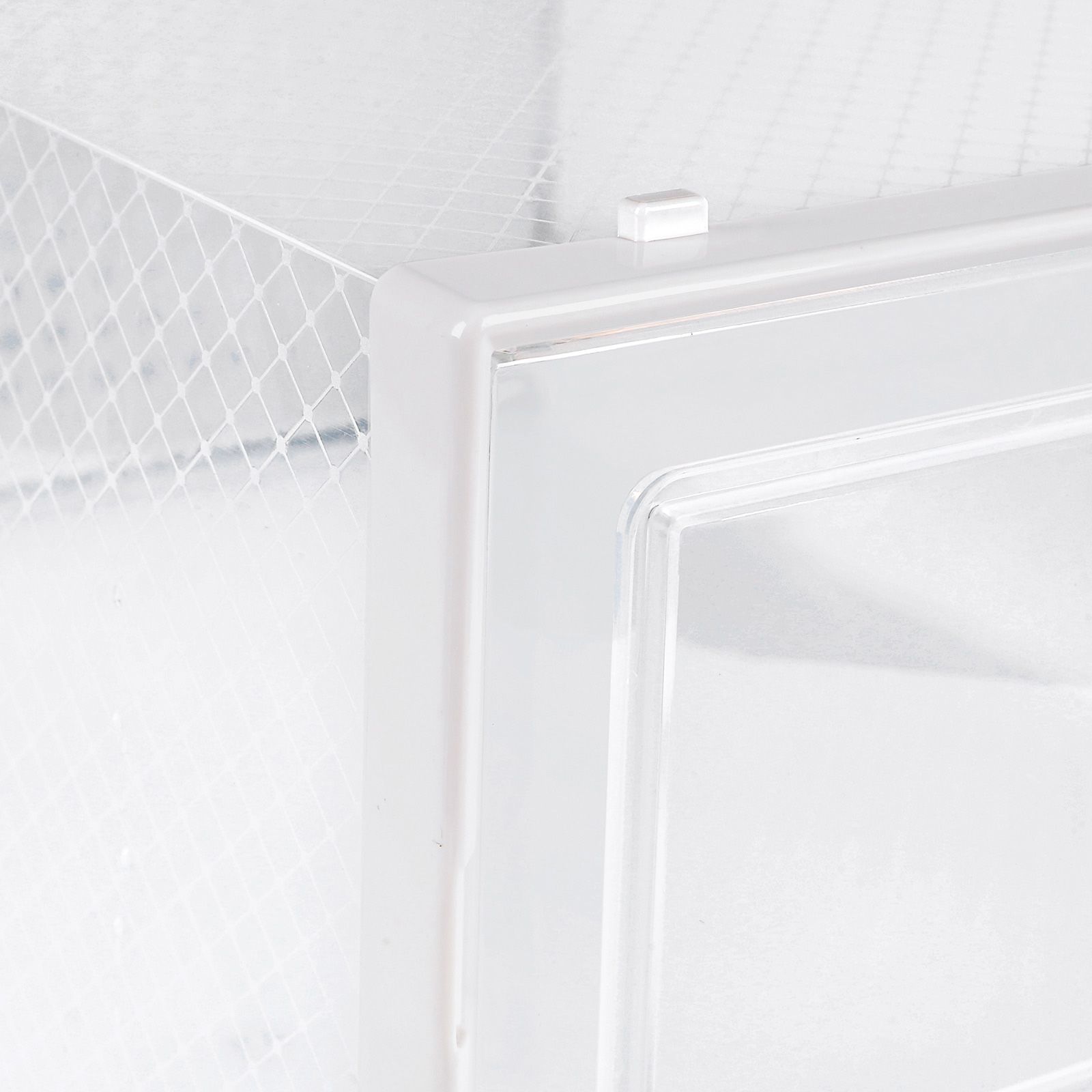 Colour: Transparent, White FrameMaterial: PP (Polypropylene) Plastic Body, PS (Polystyrene) Front DoorSize of Single Box: 35 x 25 x 18,5 cm (L x W x H)Internal Size of Single Box: 31 x 24,5 x 17,5 cm (L x W x H)