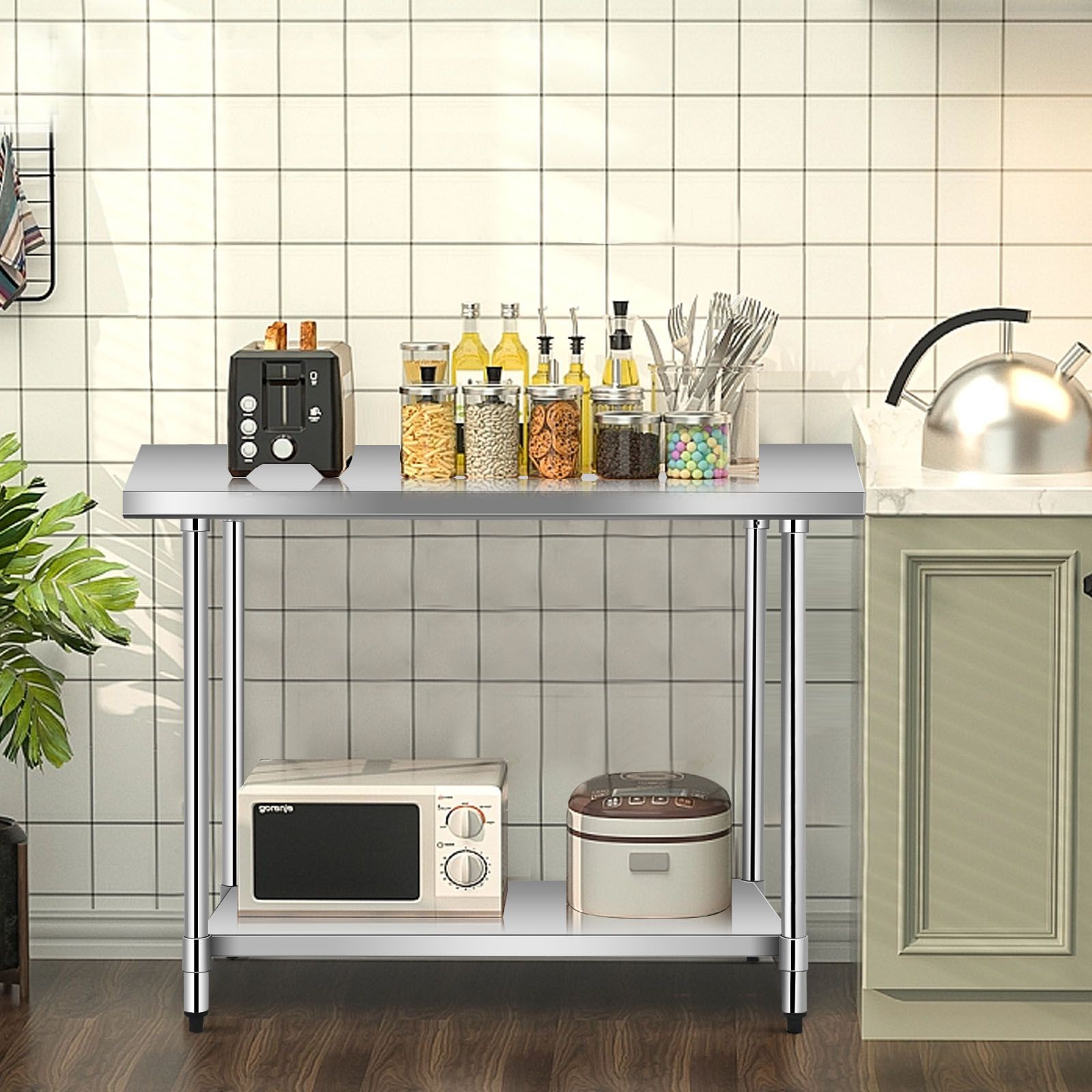 Stainless Steel Catering Table with Adjustable Undershelf and Leveling Feet
