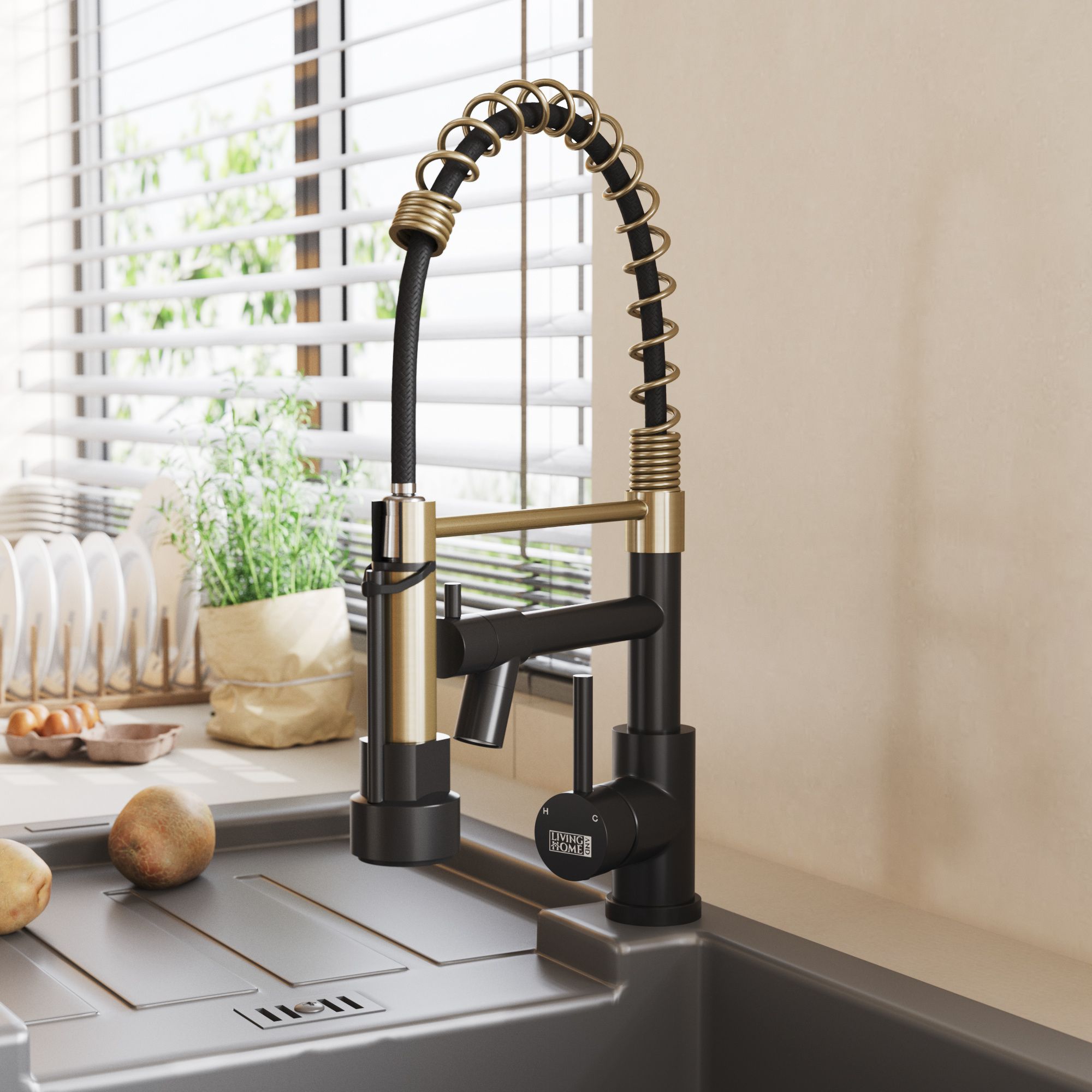 Stainless Steel Kitchen Faucet with Pull Down Spring Spout and Pot Filler