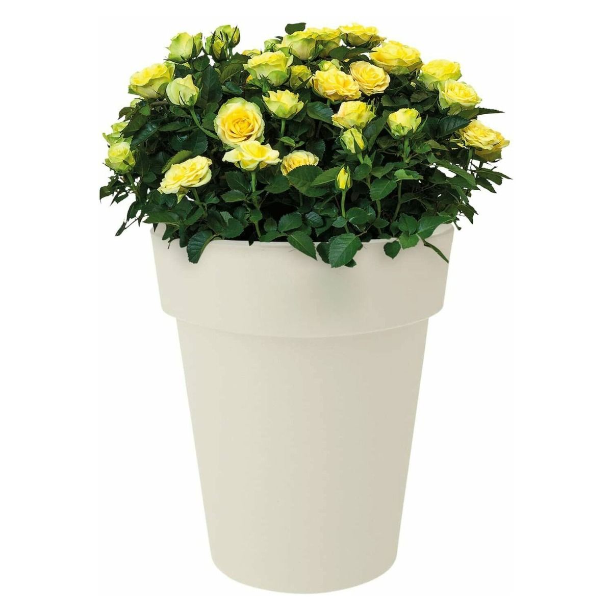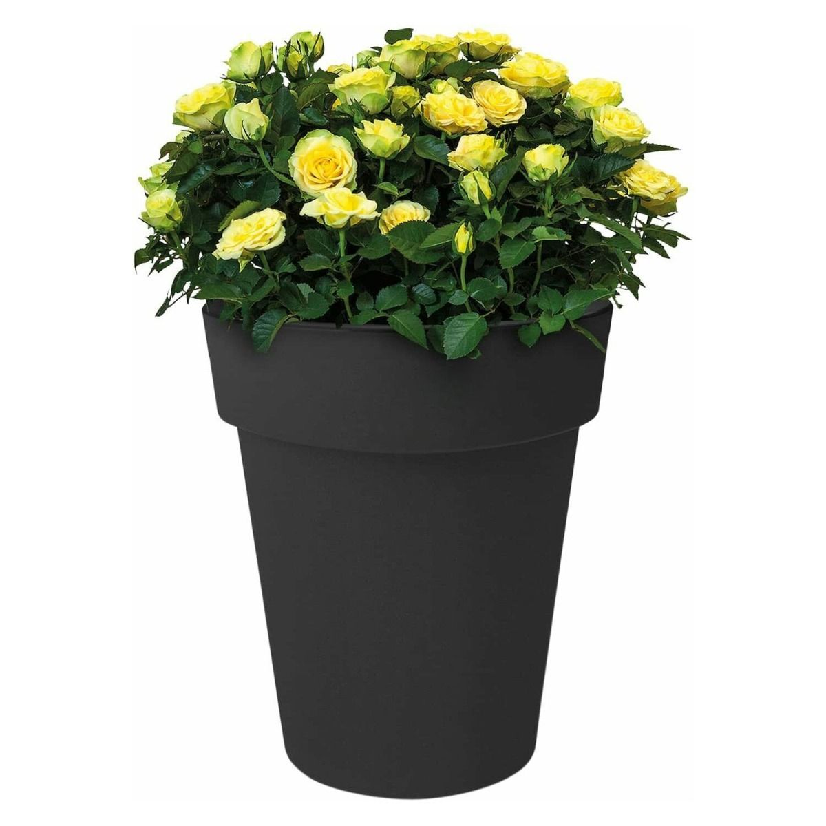 Made from recycled plastic. Thick looking top lip of the pot. Add amazing colour to any room, garden or patio!. Pot is easy to lift thanks to it being light weight. Available in sizes Medium, Large, Extra Large with Multicoloured. Lime Green, Living Black, Cherry Red / Vibrant Pink, Taupe, Cotton White.