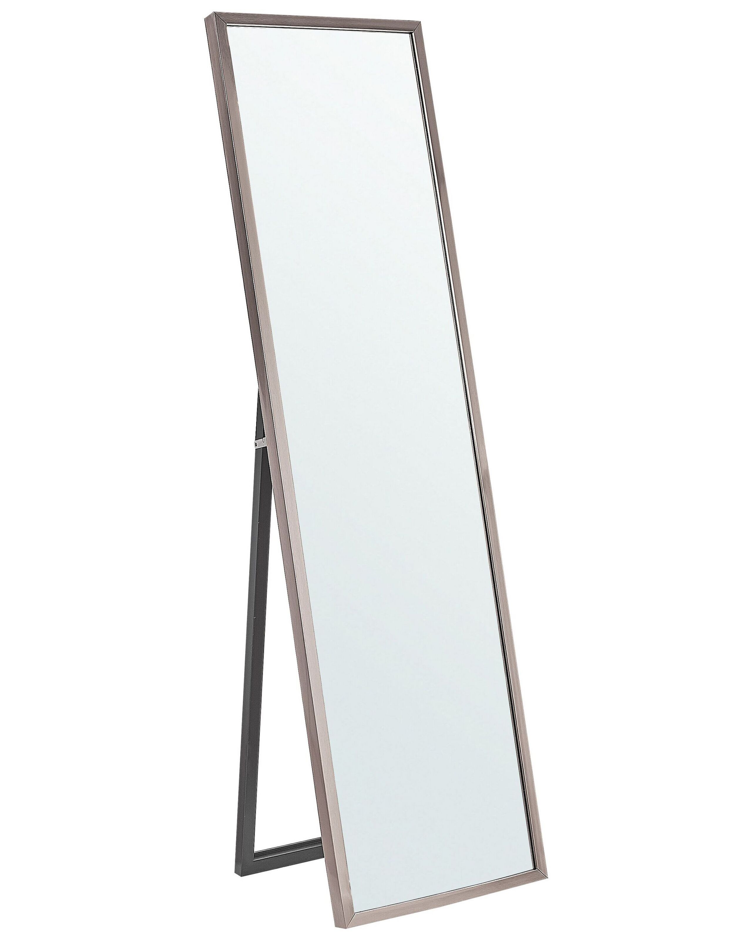 This tall, freestanding mirror makes a stylish accessory for any bedroom, living room or bathroom. Sleek design and minimalistic frame to match every interior, from modern to Scandinavian. The piece is also made out of eco-friendly synthetic material which ensures durability of the product. Featuring a practical stand, the mirror can be placed wherever you wish, visually enlarging the room and bringing reflected daylight to your living space to brighten up your day. Details: Color: Silver. Main material: Synthetic Material. Additional material: Glass. Weight: 7 Assembly: Does Not Require Assembly