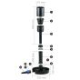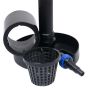 This pond skimmer ensures clean, clear water with a high visibility depth. The surface of the body of water is continuously cleared of impurities such as leaves, grasses, pollen, insects that have fallen into the water, etc, before they can sink to the bottom. This reduces nutrient overload and algae formation. With the help of a pump (not included in delivery) a thin film of water is sucked off so that a flow is created in the direction of the skimmer. The skimmer keeps the water surface completely clean up to a pond surface of up to approx. 50 - 60 m². The flow rate is 8000-16000 l/h. However, coarse particles such as leaves or grass must be removed regularly in order not to impair the full performance of the skimmer. The base of the surface cleaner for ponds is weighted down with stones on the pond floor. In addition, the collecting basket is designed with the adjustable height and the expansion pipe can be adapted to different pond depths.