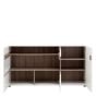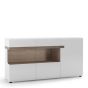 3 Door Glazed Sideboard in white with an Truffle Oak Trim. Unconventional design - a proposal for the followers of the latest trends. The clever mix of scratch resistant white melamine with beautiful high gloss fronts and oak melamine trim makes this top quality collection of furniture the ideal destination for the most modern of homes, the massive range that includes many cabinets and wall units fulfils every storage and display option.