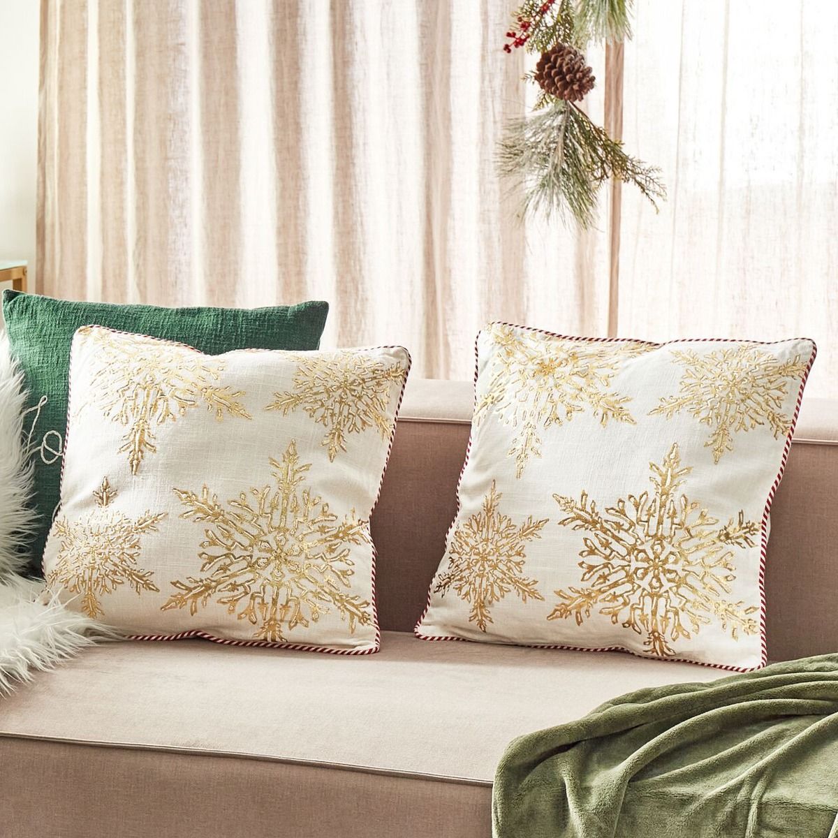 Stapelia Set of 2 Cotton Cushions Christmas Motif 45 x 45 cm - White and Gold