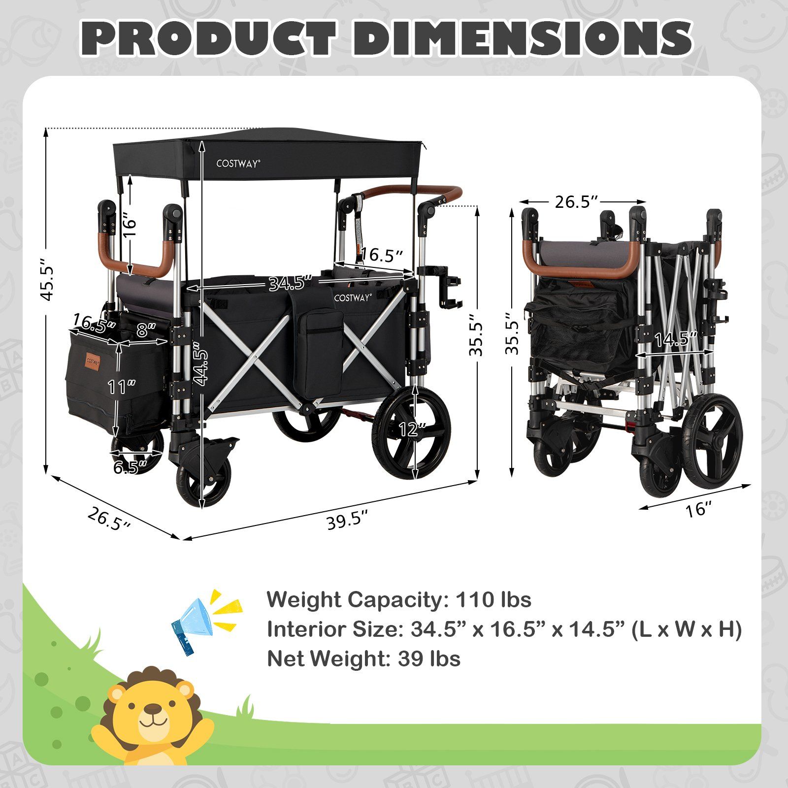 STARVESSA Twin Baby Double Stroller Wagon Push Pull Stroller-Black