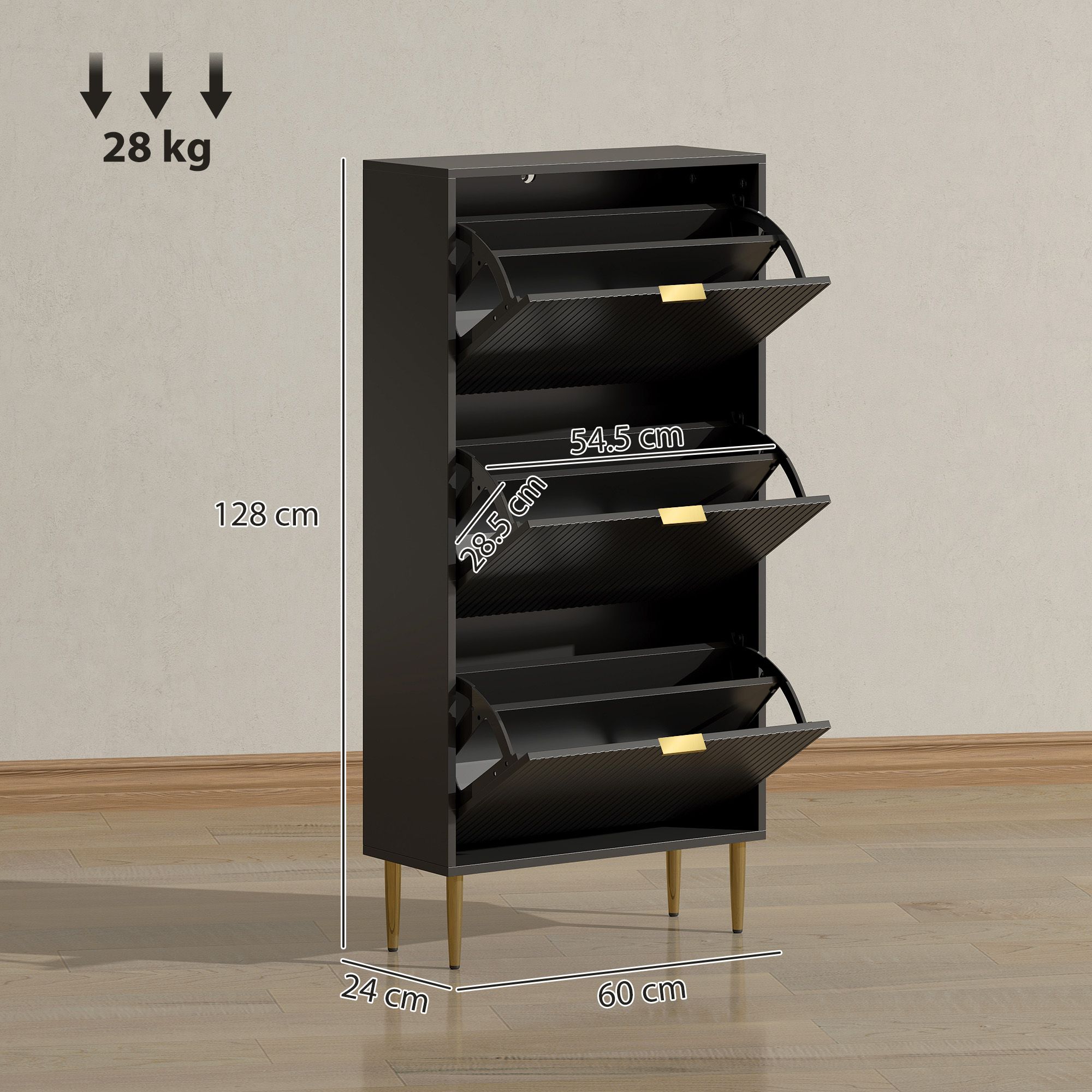 STASHOE 3 Drawer Tallboy Narrow Shoe Cabinet Flip Doors - Black
