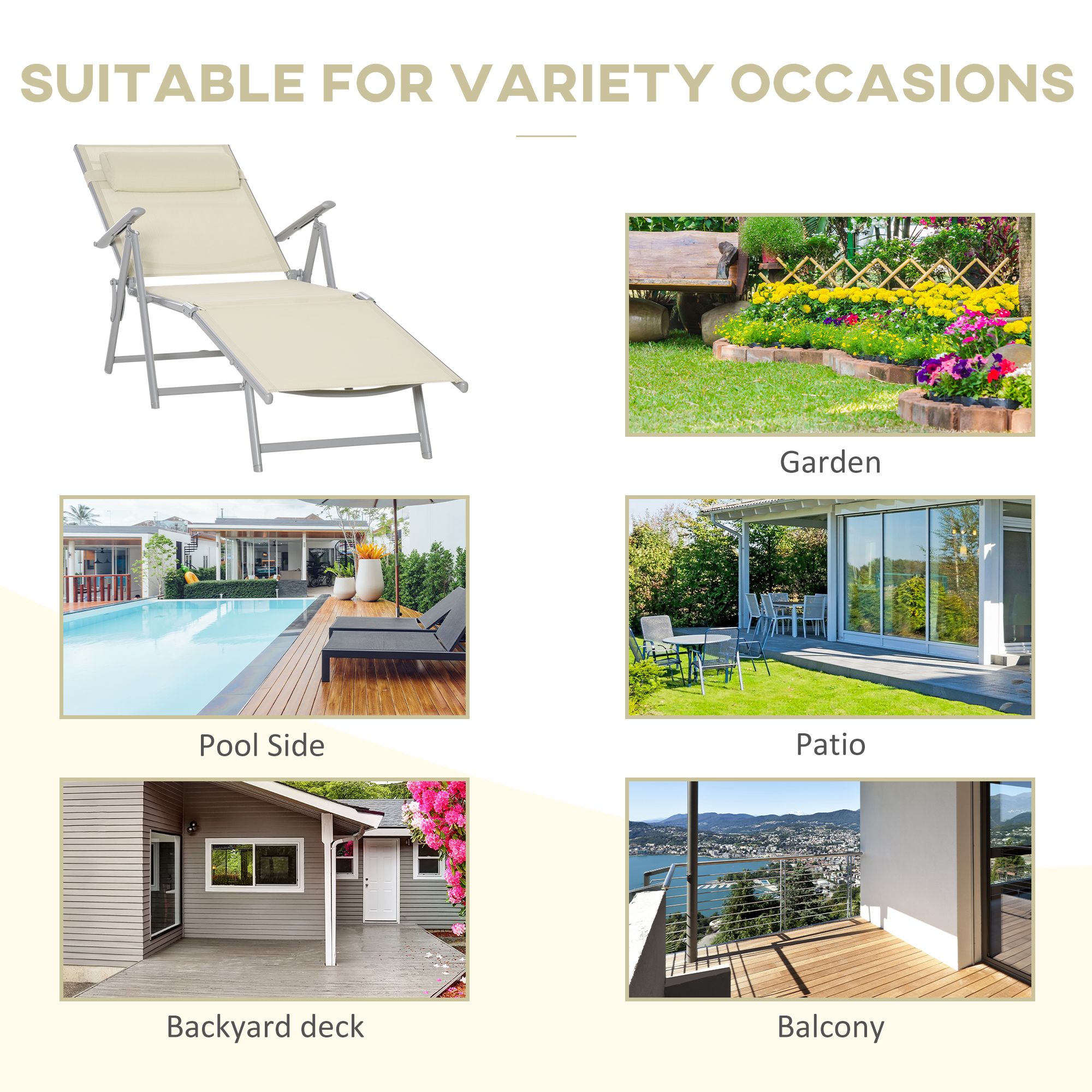 - SEVEN-LEVEL BACKREST: Set to a position you want to lie back on the outdoor recliner chair, whether that's sleeping in the sun or relaxing with a drink or reading a book. Great for gardens and outdoor patio spaces.
