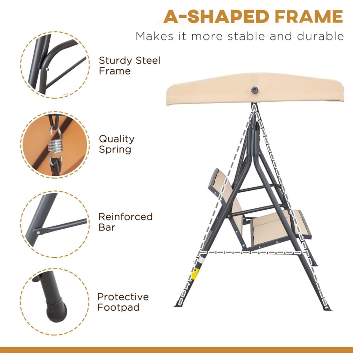 Give yourself a tranquil place to unwind in your garden and outside areas with this swinging garden. Seats up to three people, so it's spacious enough to take a break with friends or even catch some time to yourself under the sun. The swinging chair's steel frame is tough and stable, with anti-slip feet to protect the floor beneath. Complete with a weather-resistant canopy to protect you from the elements - keeping you cool and dry as you relax.