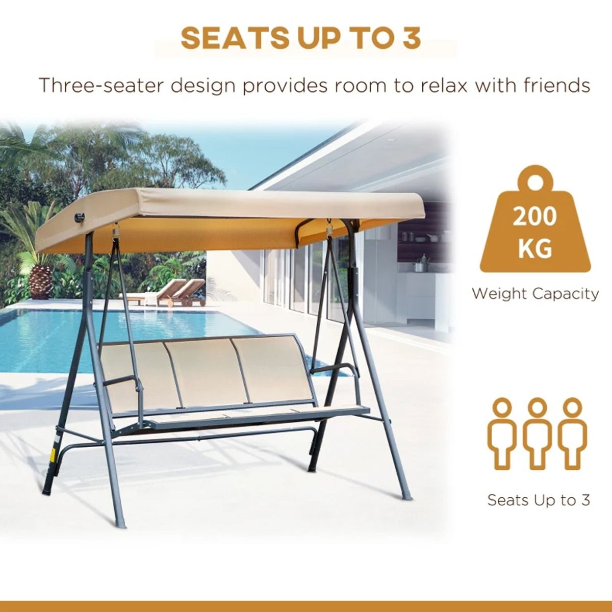 - Three seat design – perfect for relaxing with friends or yourself