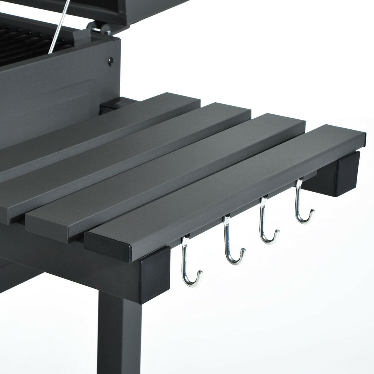 - Side tray with hooks to keep plates and utensil