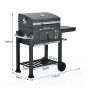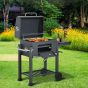 Steel Frame Charcoal Barbeques Grill With Smoker Shelf - Black