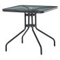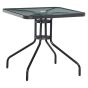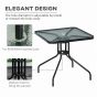 Steel Frame Square Patio Accent Tempered Glass Table with Umbrella Hole - Black