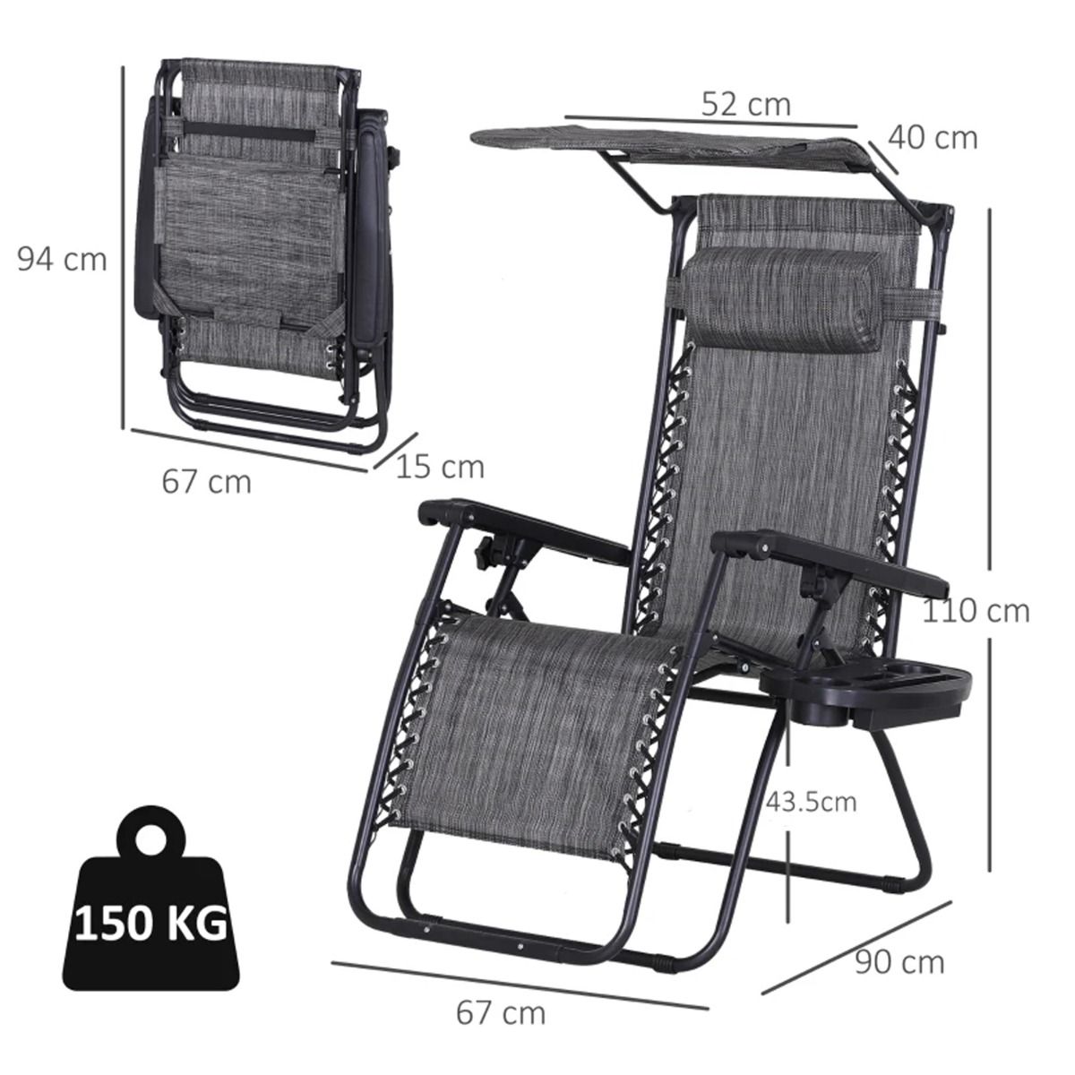 - Powder-coated steel frame for strength and durability in a zero-gravity design for a weightless sitting experience