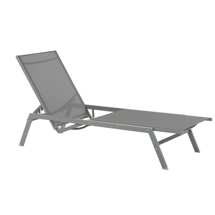 Enjoy the beautiful weather and soak in the sun while lying on this outdoor lounger. It's made out of textile fibres and steel, which makes it extremely durable and easy to clean. The product is also UV-resistant, so you don't have to worry about getting it damaged by the sun rays. The lounger features an adjustable backrest, so you can go quickly from book reading to having a nap during the day. Details: Color: Grey. Main material: Steel. Additional material: Textile Fibres. Weight: 11 Assembly: Full Assembly Required Weight Capacity: 160 Legs Height: 32 Seat Height: 32