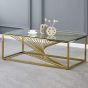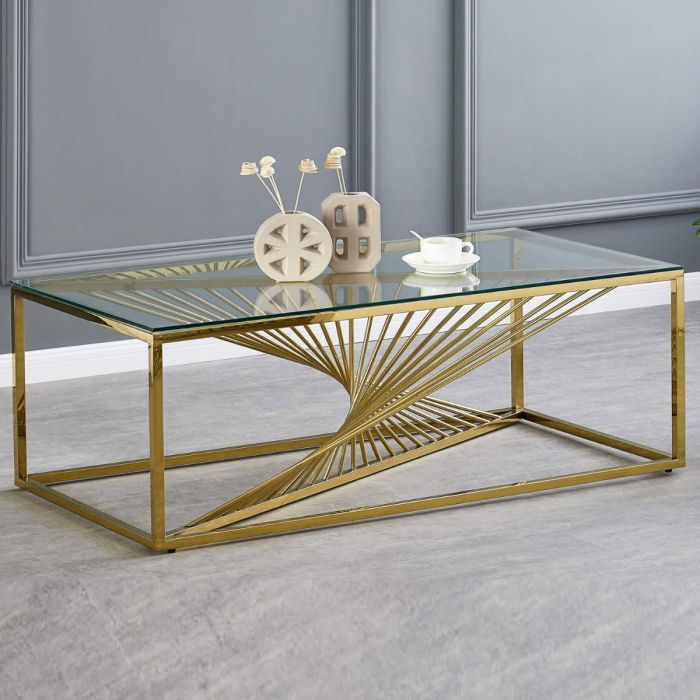 Introducing the Stefano collection from Home Done, where sophistication meets contemporary design. The Stefano Clear Glass Coffee Table offers a stunning focal point for your living space. Crafted with a clear glass top and a sleek stainless steel base available in both gold and silver finishes, this coffee table effortlessly combines style and functionality. Its timeless rectangular shape adds a touch of elegance to any room, while the clear glass top provides a spacious surface for displaying decor or enjoying beverages with friends and family. Elevate your home decor with the Stefano Coffee Table, a perfect blend of modern aesthetics and enduring quality.