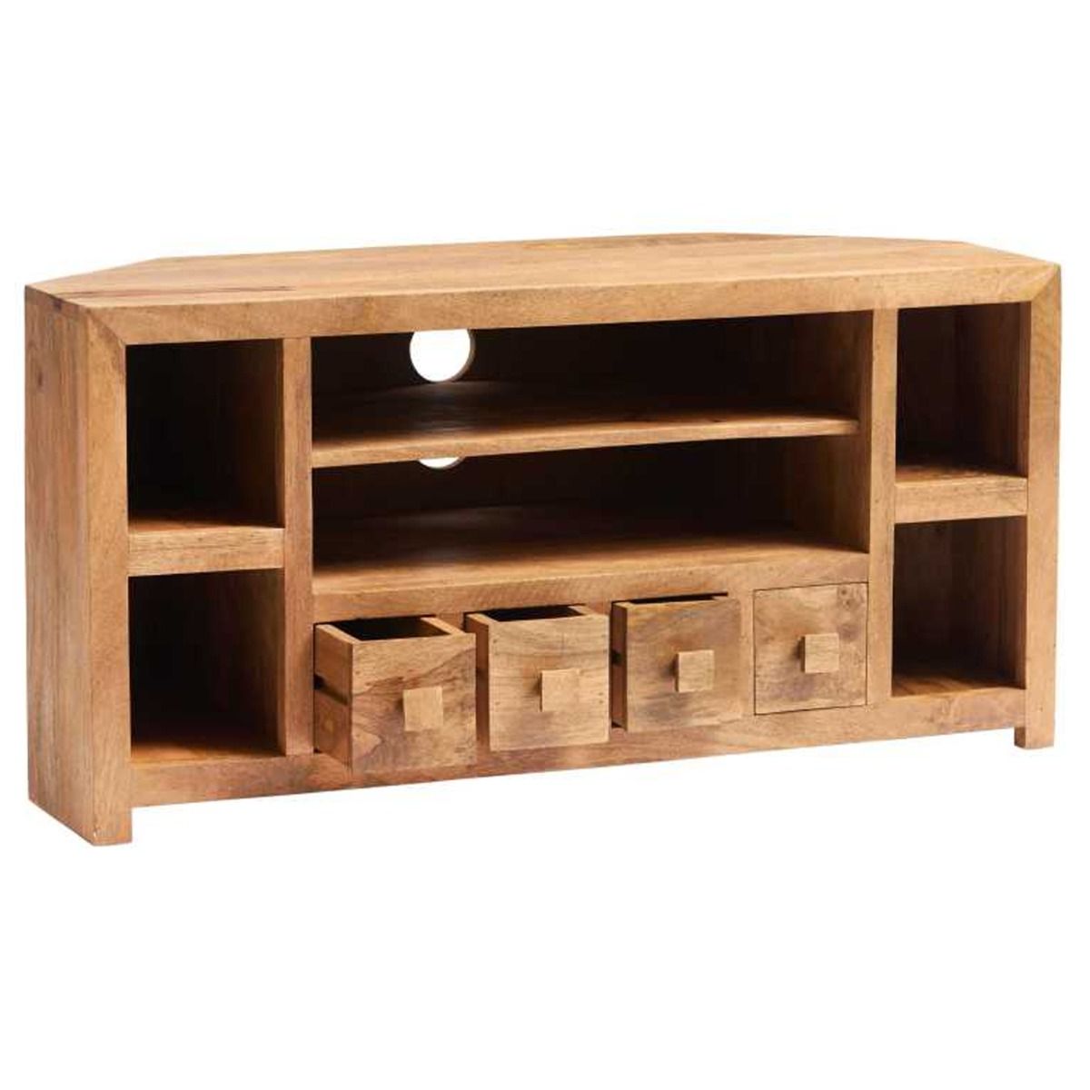 Stella Light Mango Wood Corner TV Unit with Drawers - Matt Finish