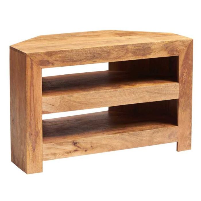 Stella Light Mango Wood Open Corner TV Unit - Matt Finish