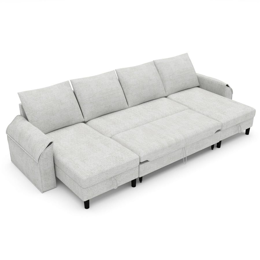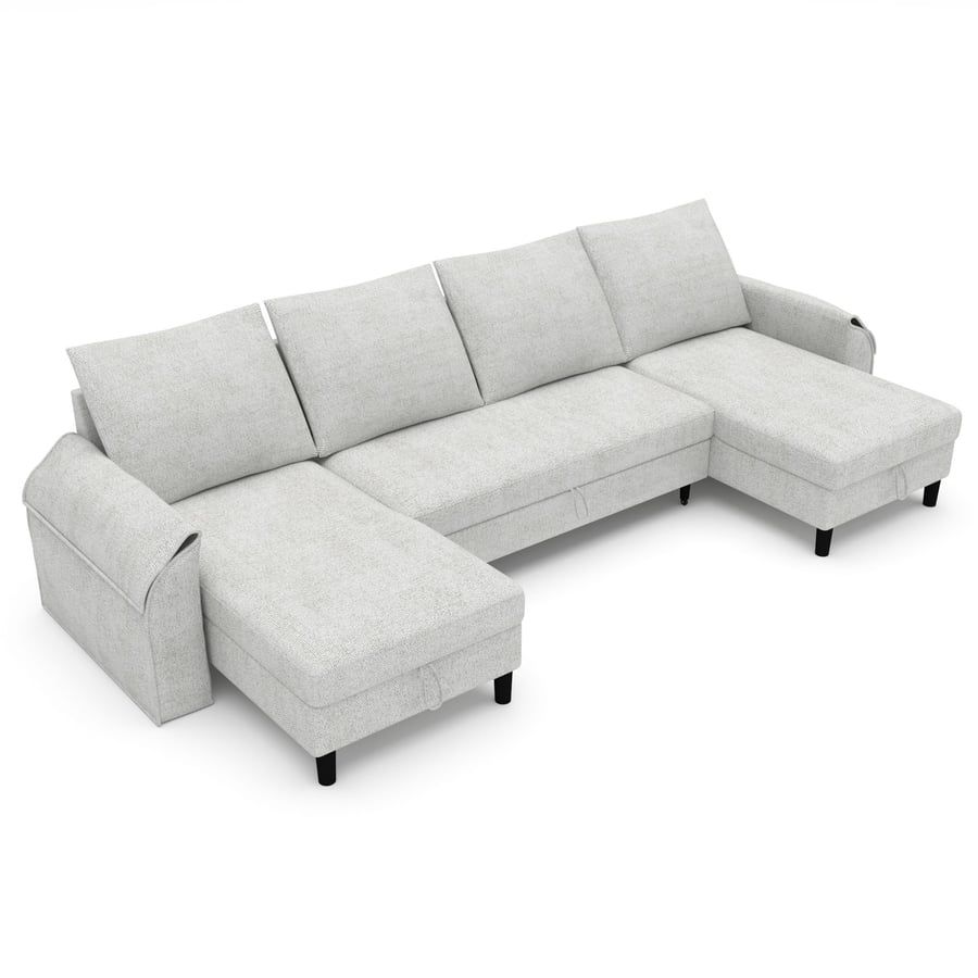 STOCKBURY Fabric 4 Seater U Shaped Corner Sofabed - Light Grey