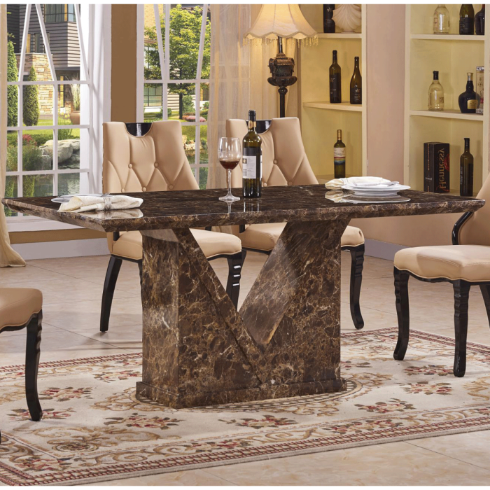 Stockport Marble Effect Dining Table Natural Stone Table and Marble Base - Lacquer Finish