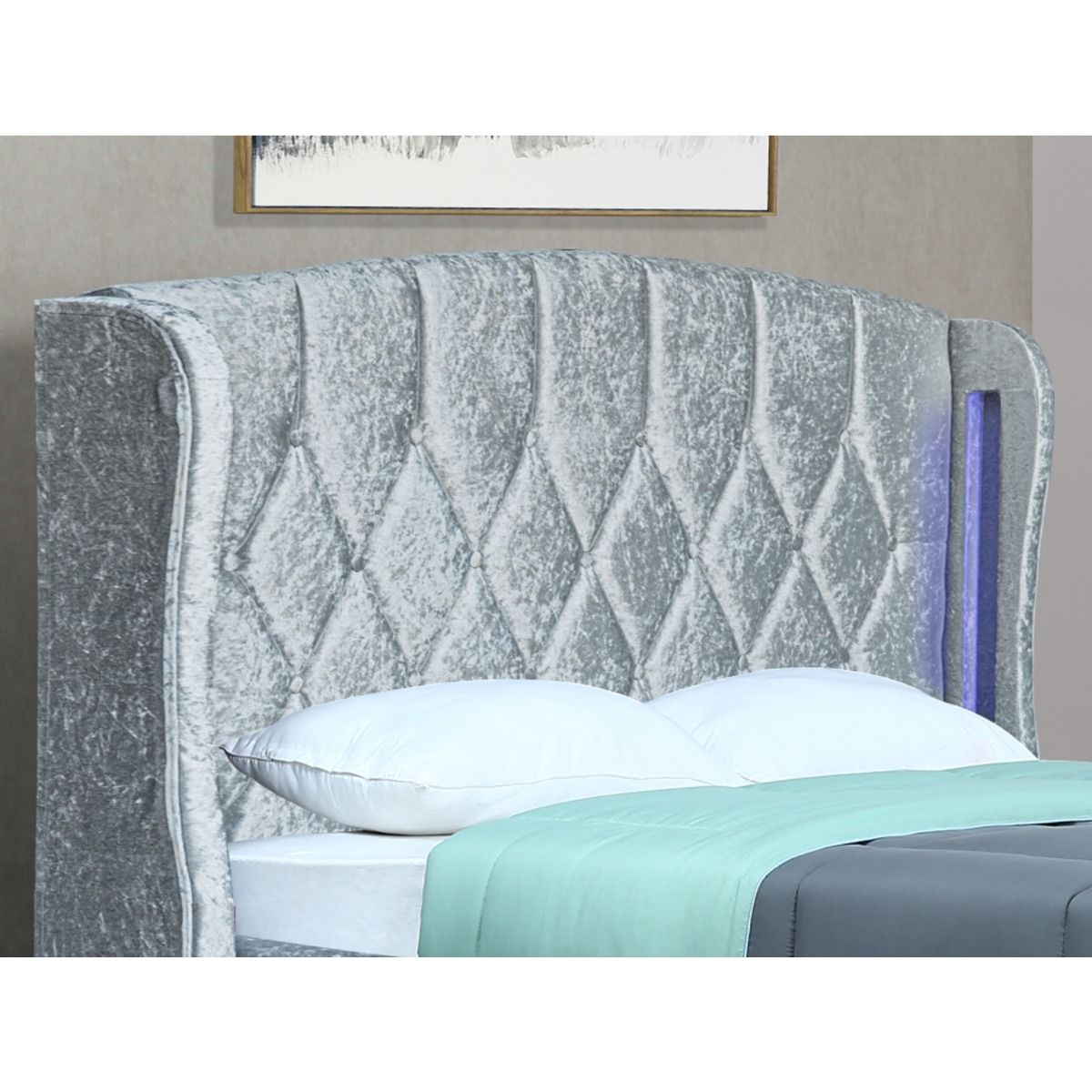 Stockport Ottoman Storage Crush Silver Velvet Bed Frame with LED - 4ft6 Double size