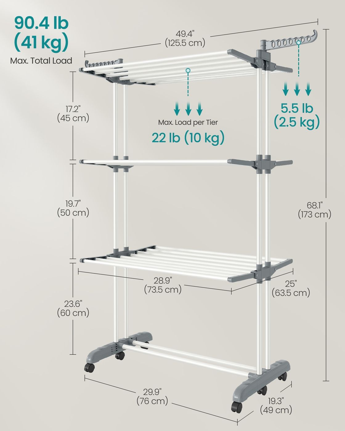 Max. Total Static Load Capacity: 90.4 lb (41 kg)