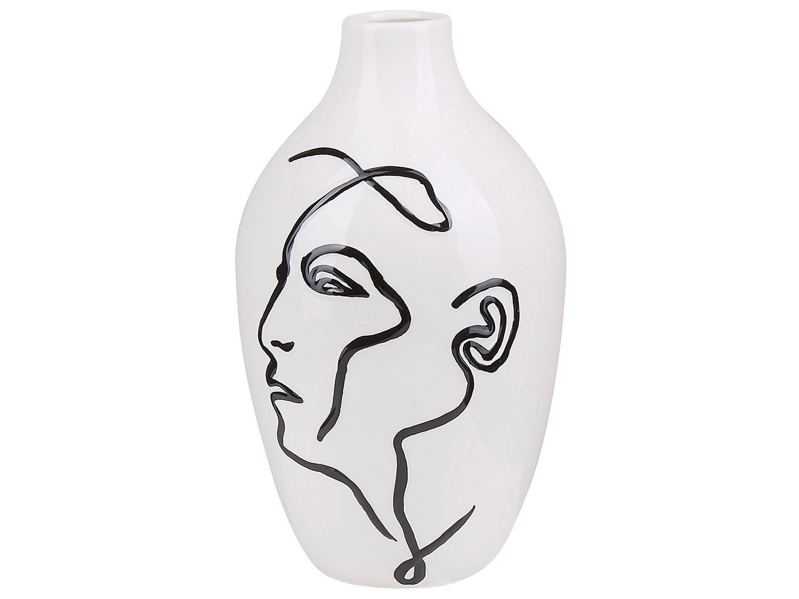 Fresh flowers can completely change the vibe of a room, and when placed in an eye-catching vase, they will look even better. This piece is going to do exactly that, thanks to its unique face pattern on the front. The vase is also very durable and easy to clean, since it's made out of stoneware. Not only that, the product is also waterproof, so you don't have to worry about damaging it when pouring water inside. Details: Color: White, Black. Main material: Stoneware. Weight: 1 Assembly: Does Not Require Assembly