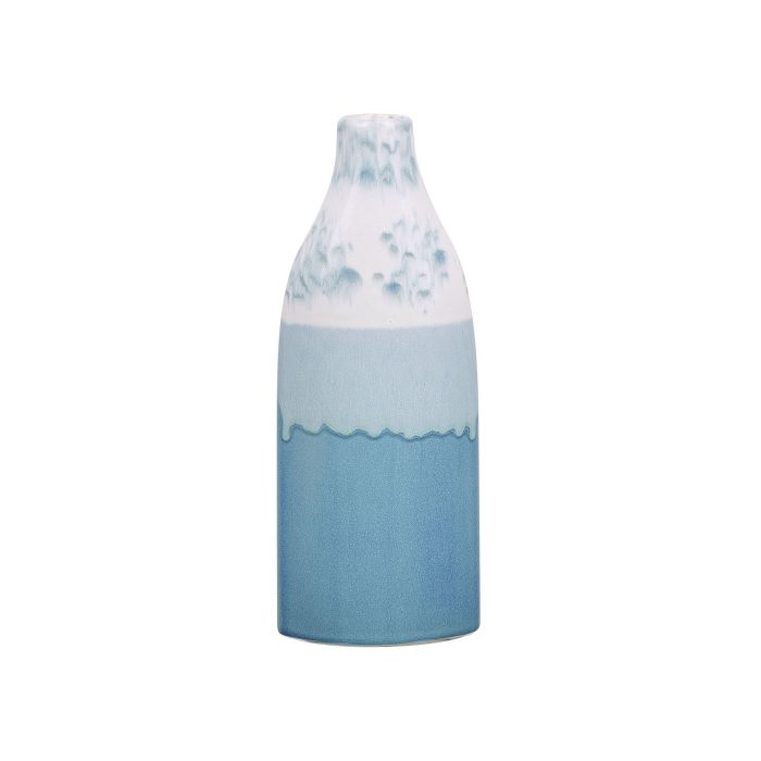 This bottle-shaped vase will add interest to any interior. Featuring a gorgeous pattern depicting water and blue horizon, it brings in a whimsical touch. Style it as a standalone décor piece or match with flowers. Made out of stoneware in a glazed finish, this vase is waterproof and has pads on the bottom to prevent surfaces from getting scratched. Details: Color: Blue, White. Main material: Stoneware. Weight: 1 Assembly: Does Not Require Assembly