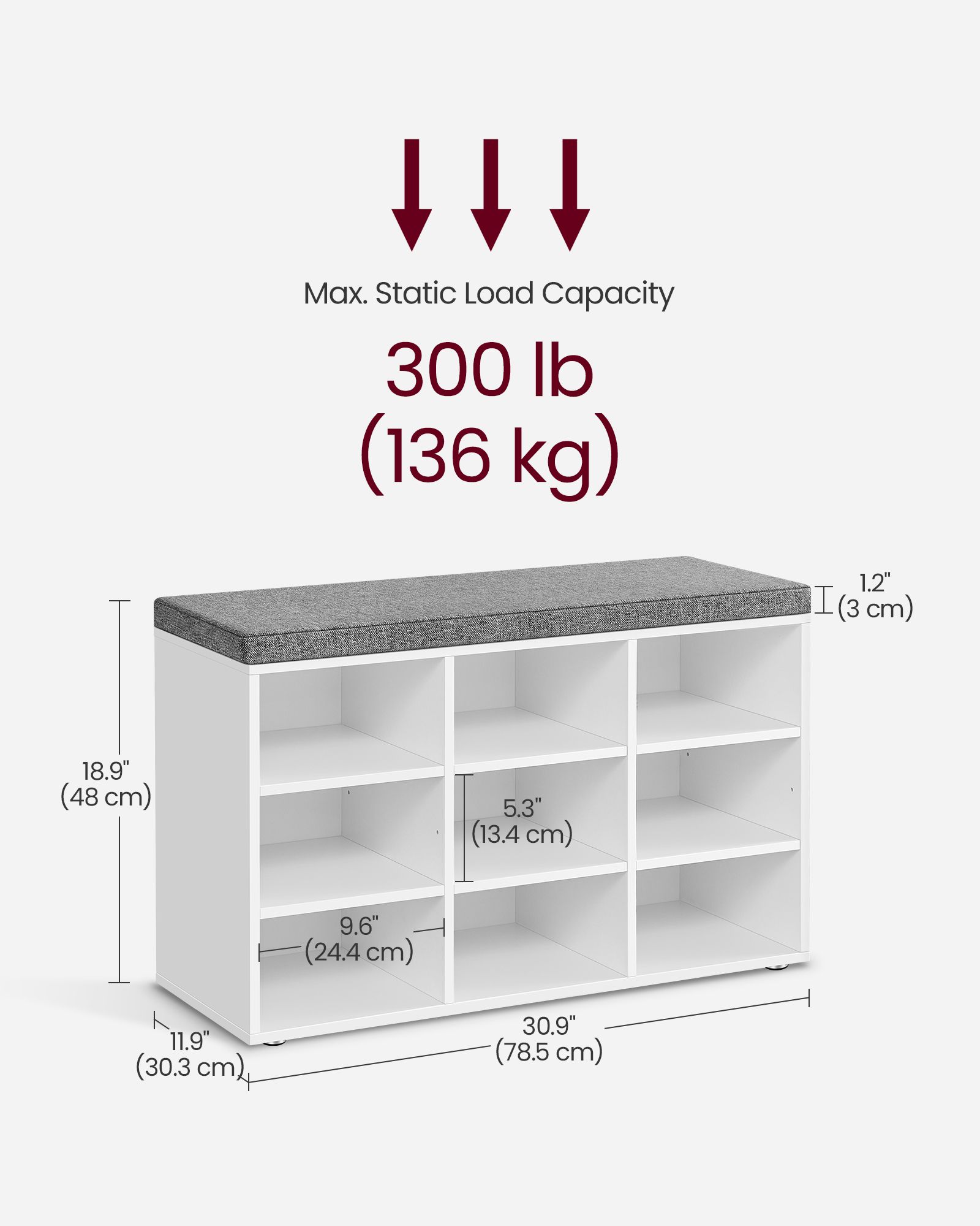 You're reviewing:Storage Bench with Padded Seat and 9 Compartments White
