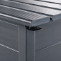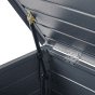 This outdoor storage box is perfect for your garden or patio. Made from sturdy aluminium, it's designed to resist both water and wind. Spacious and finished in a classic dark grey colour, this box can hold a variety of equipment, tools, and accessories while complementing many outdoor settings.