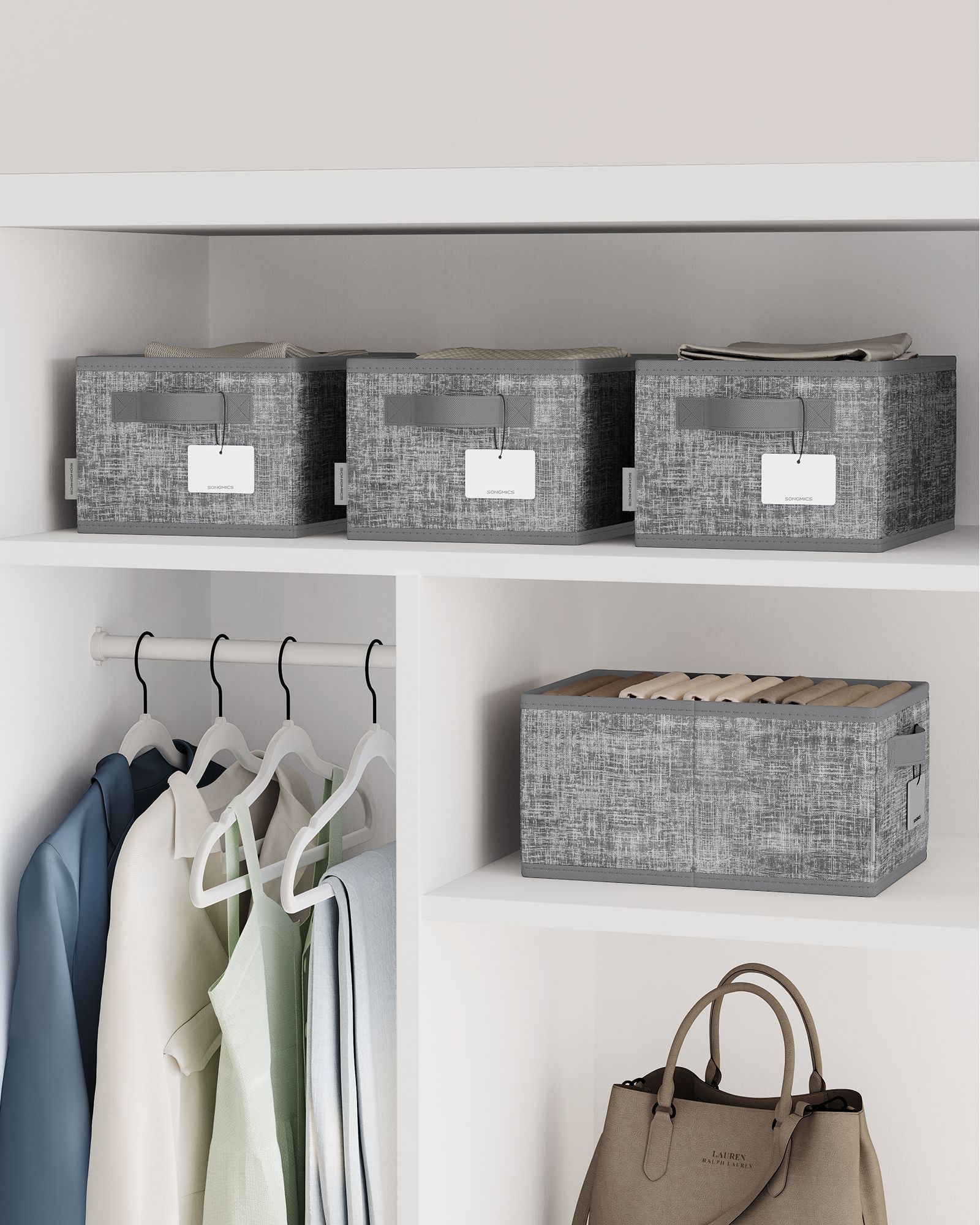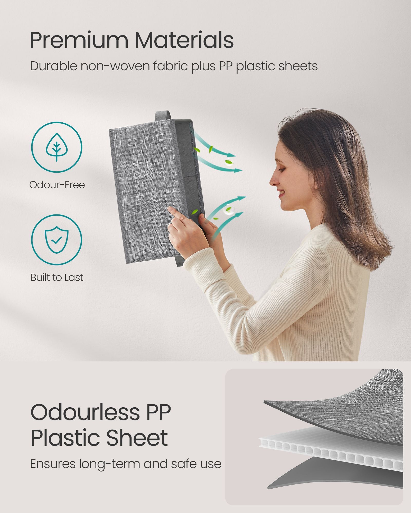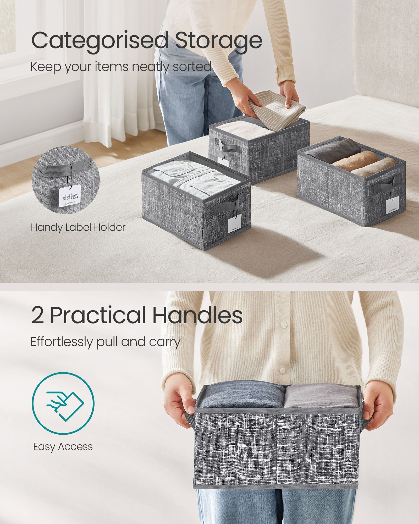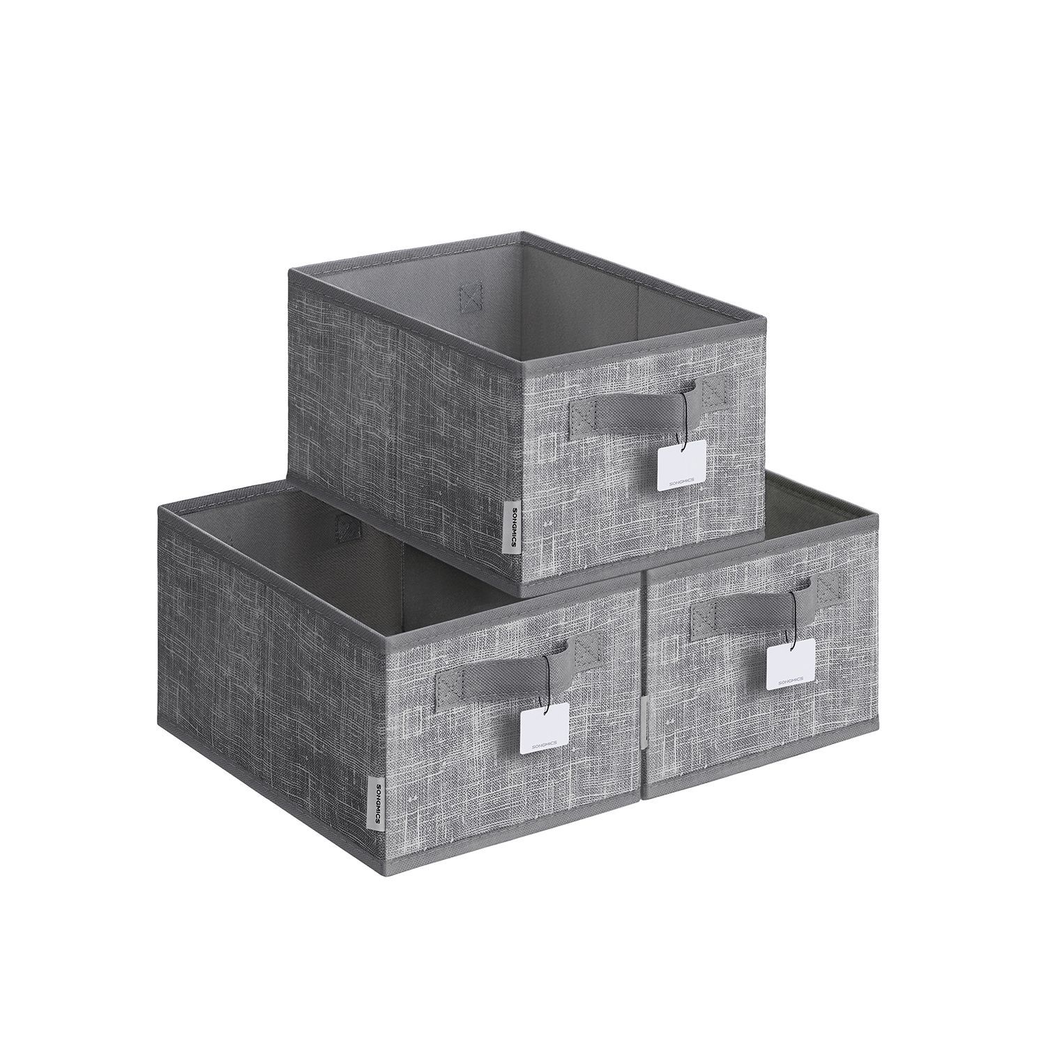 Storage Boxes - MONRO Collapsible Set of 3 15 cm High Cattail Grey