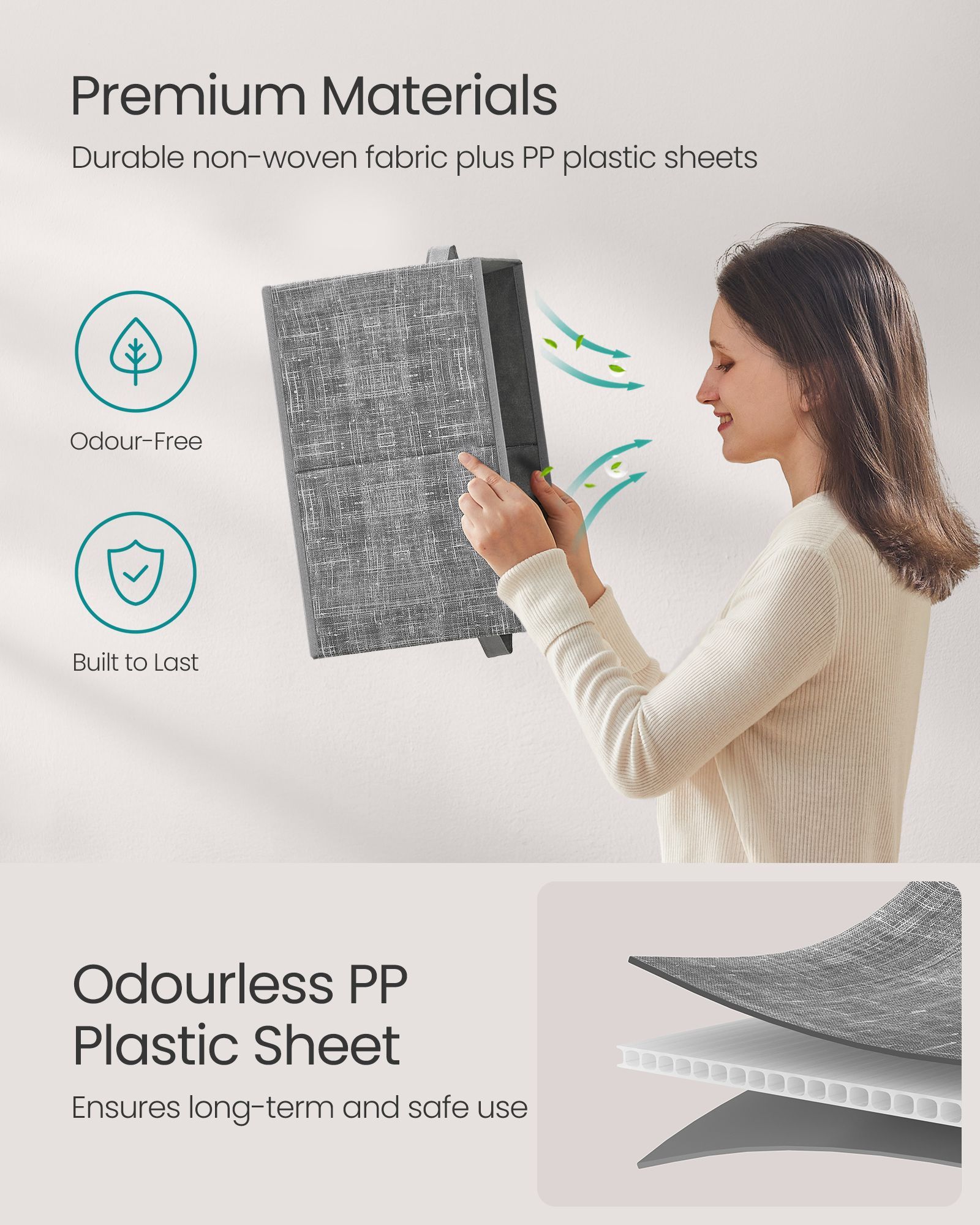 Storage Boxes - MONRO Collapsible Set of 3 24 cm High Cattail Grey