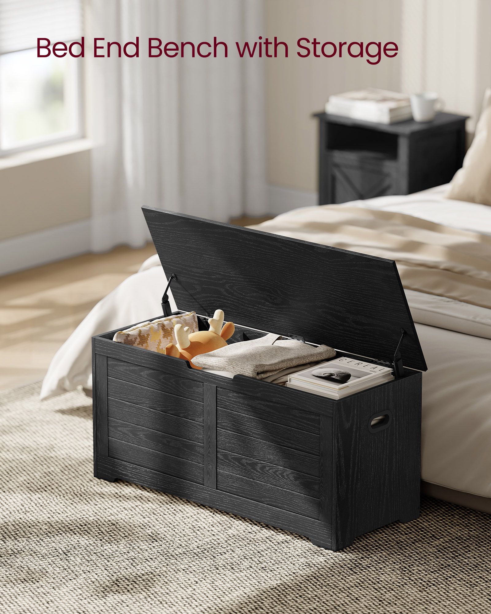 Storage Chest - NOVDA 100 cm Wide 2 Safety Hinges - Ebony Black