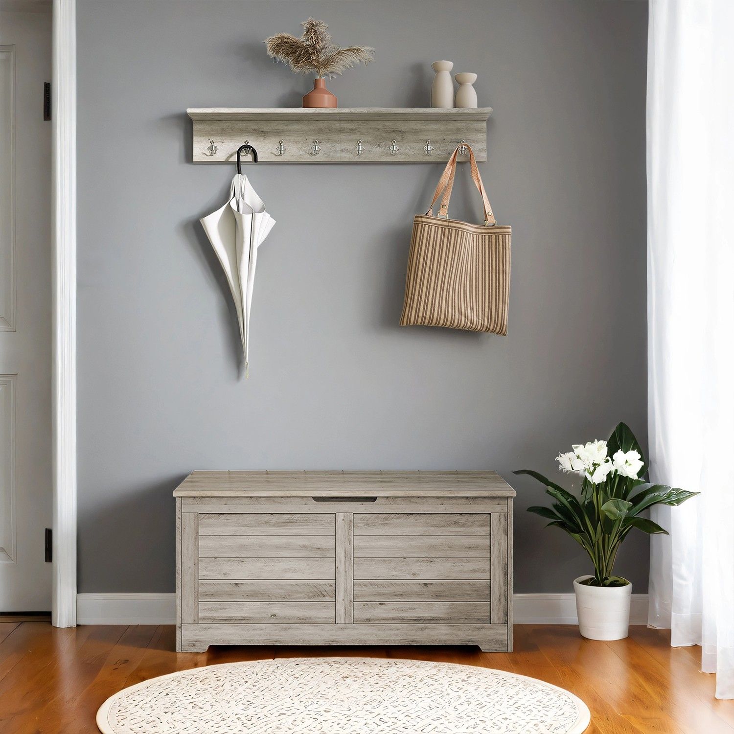 Storage Chest - VERRA Storage Bench with 2 Safety Hinges Farmhouse Style - Frosted Grey