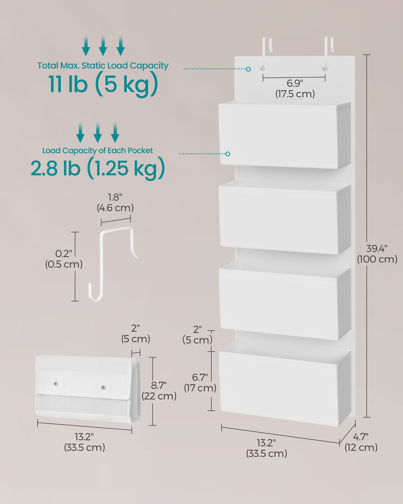 Storage Organiser - ORAVAS Over-Door Storage with Multiple Pockets - White