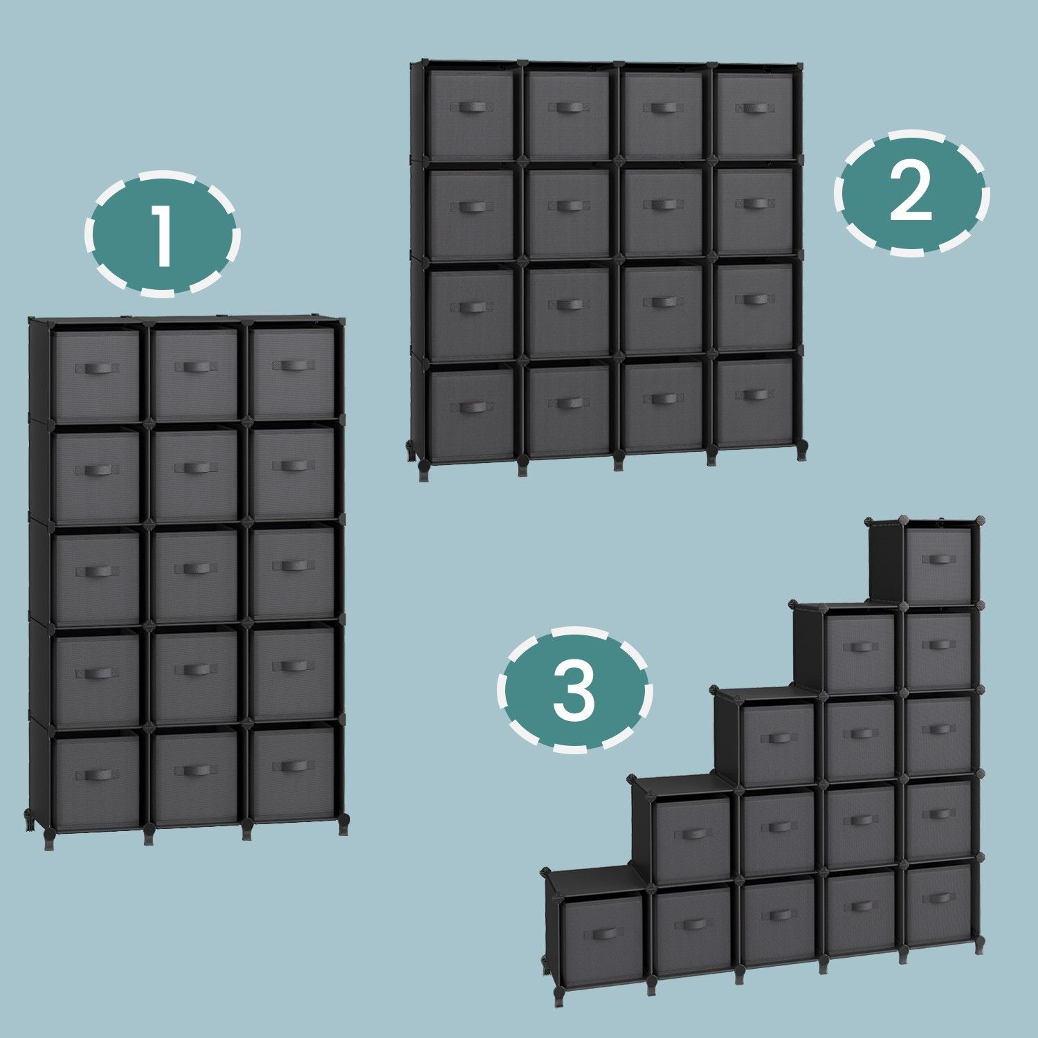 Storage Organizer - VERRA Cube Modular Unit with Storage Boxes - Black