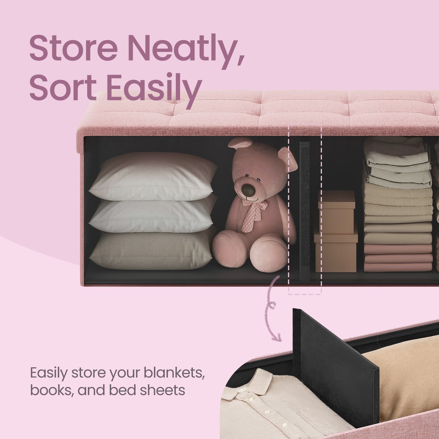 Storage Ottoman Bench - VIVRAH End of Bed Bench 38 x 110 x 38 cm - Pink