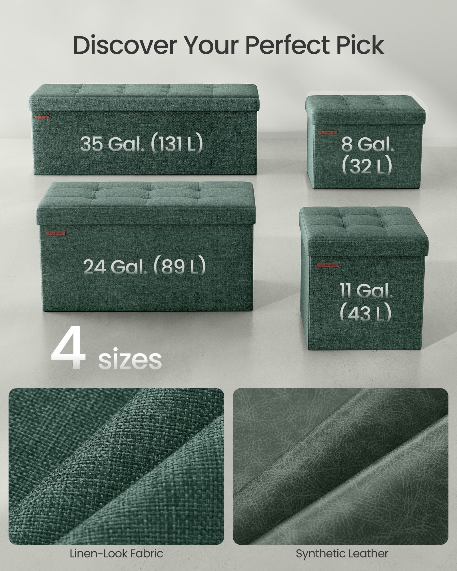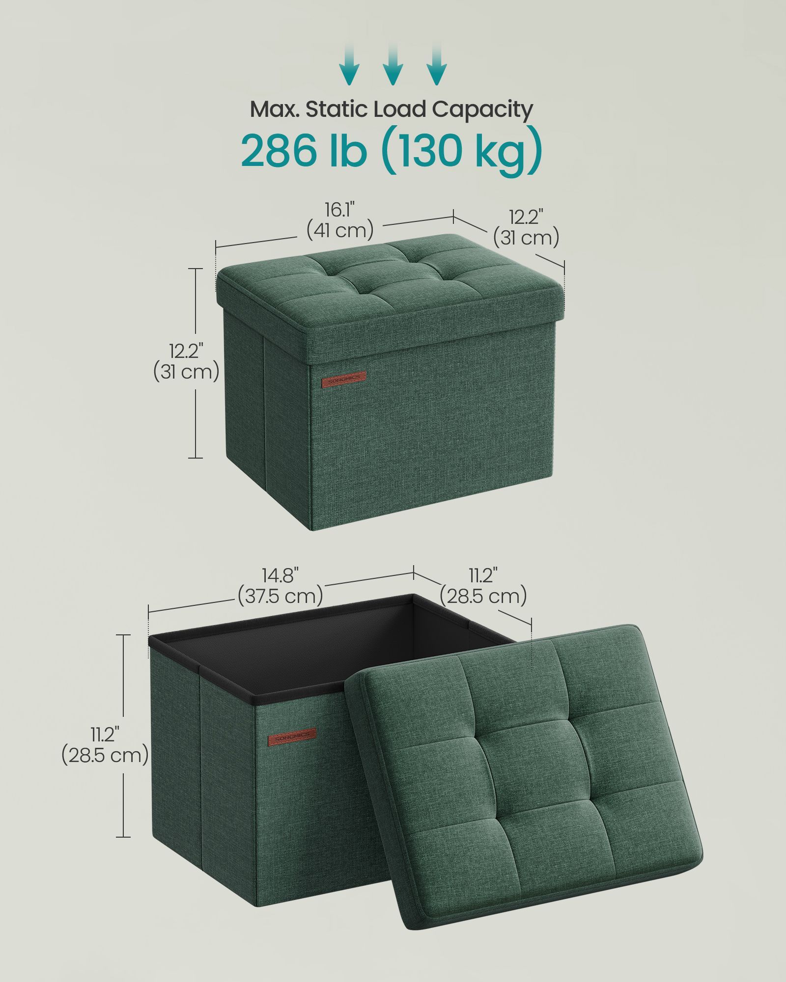 Storage Ottoman - VELSO Foldable Small Ottoman Retro Green