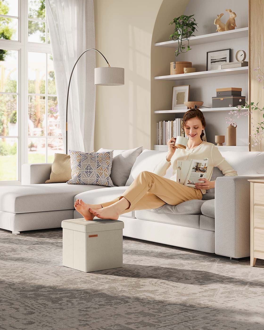 Storage Ottoman - VELSO Foldable Small Storage Ottoman 30 x 30 cm - White