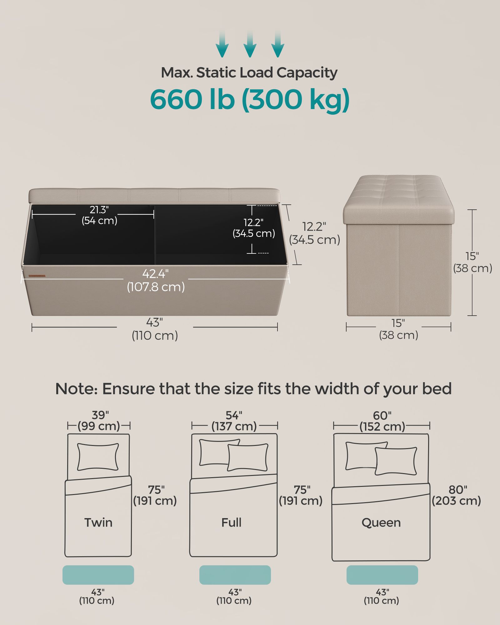 Storage Ottoman - VELSO Foldable Storage Ottoman 110cm Camel Brown