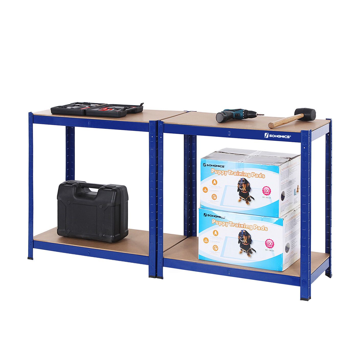 Tame your garage chaos with the SONGMICS 5-Tier Garage Shelving Unit. Crafted with a durable, powder-coated steel frame and sturdy MDF shelves, this silver rack boasts a 130 kg per tier capacity. Its adjustable shelves and split-unit capability offer versatile storage for tools, garden supplies, and more. Includes an anti-tip kit for enhanced safety.