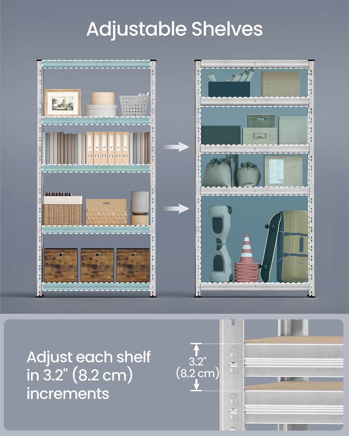 Storage Shelf - VERTTO Heavy Duty Metal Adjustable Shelves 100cm - Silver