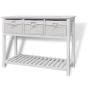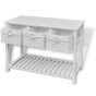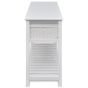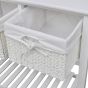 This understated romantic white storage sideboard with woven baskets presents an excellent storage solution for the bedroom, hallway or bathroom. This storage unit, made of high-quality material, has three woven baskets and a slatted bottom tier. Each basket has a washable fabric liner. The raised floor slats help keep the items stored on them ventilated and dry. This wooden storage side table will become one of your favourite furnishings!
