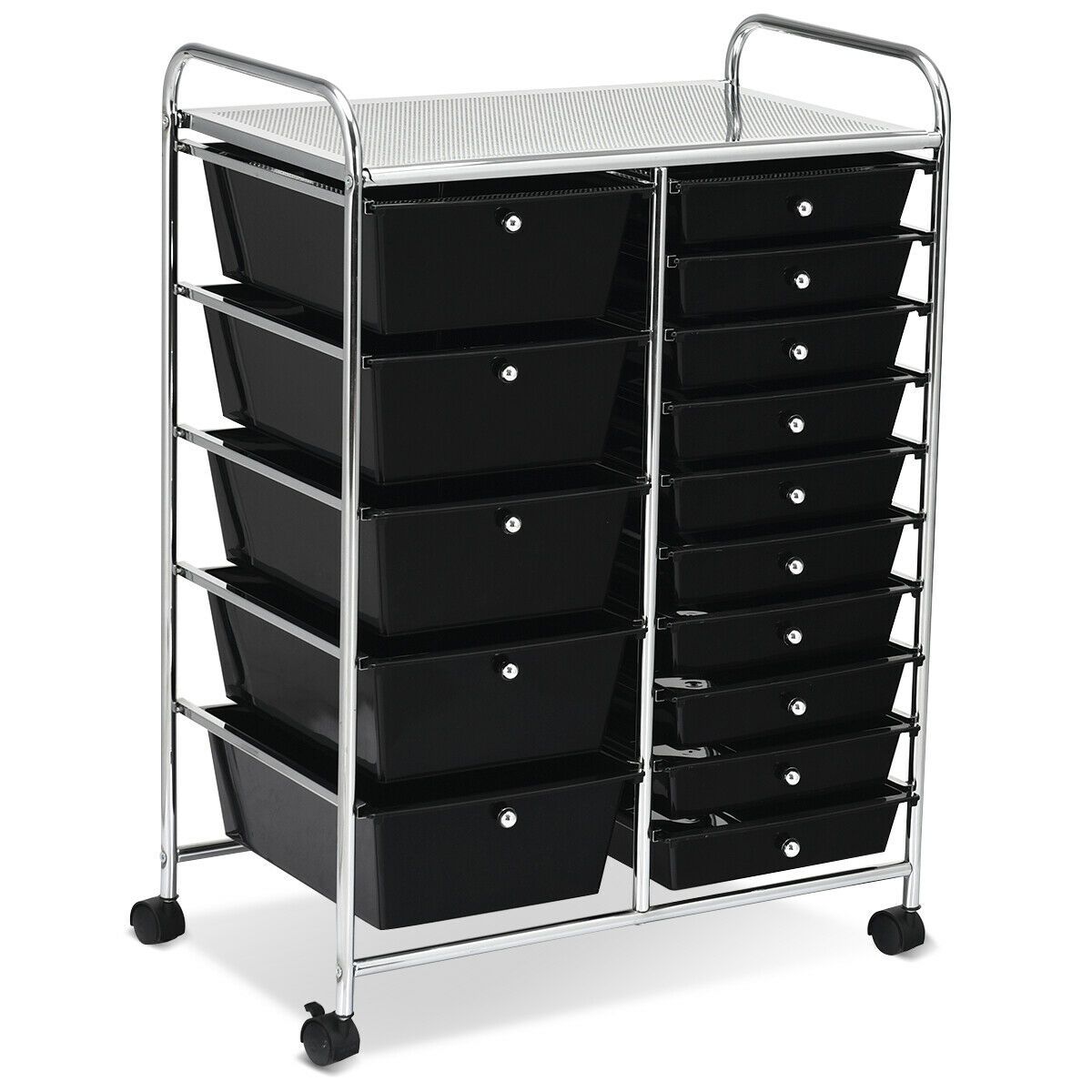 Storage Trolley - 15 Drawer Rolling Storage Cart with 4 Wheels for Beauty Salon-Black